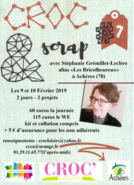 Le Centre Culturel d'Achères organise en partenariat avec Croc' Loisirs une CROP avec Stéphanie Grémillet-Leclère les 09 et 10 février 2019, de 9h00 à 18h00.