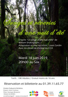 Retrouvez sur scène l'intégralité de nos élèves enfants et adultes autour de la pièce "Songes et rêveries d'une nuit d'été ".